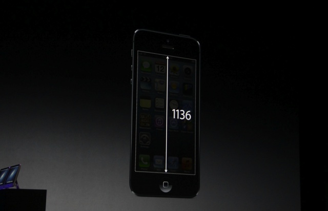 - The long-rumored (and handsome) two-toned design is indeed legitimate, as is the new iPhone’s larger 4-inch Retina Display. And yes, that 16:9 display runs at 1136 by 640 with five rows of icons. According to Schiller, it’s “the most accurate display in the industry” because the touch sensors are embedded in the display as well.